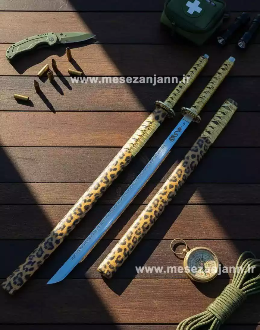 شمشیر سامورایی پلنگی با تیغه فولادی سخت‌کاری‌شده و بدنه‌ای با طرح الهام‌گرفته از پوست پلنگ، ترکیبی از قدرت و زیبایی را ارائه می‌دهد. دسته خوش‌دست و طراحی متعادل شمشیر، کنترل بالا و راحتی استفاده را فراهم می‌کند. این مدل انتخابی فوق‌العاده برای کلکسیون‌داران، علاقه‌مندان به سلاح‌های سنتی ژاپنی و دکورهای خاص است. ترکیبی از هنر، ظرافت و استحکام در یک طراحی منحصربه‌فرد.